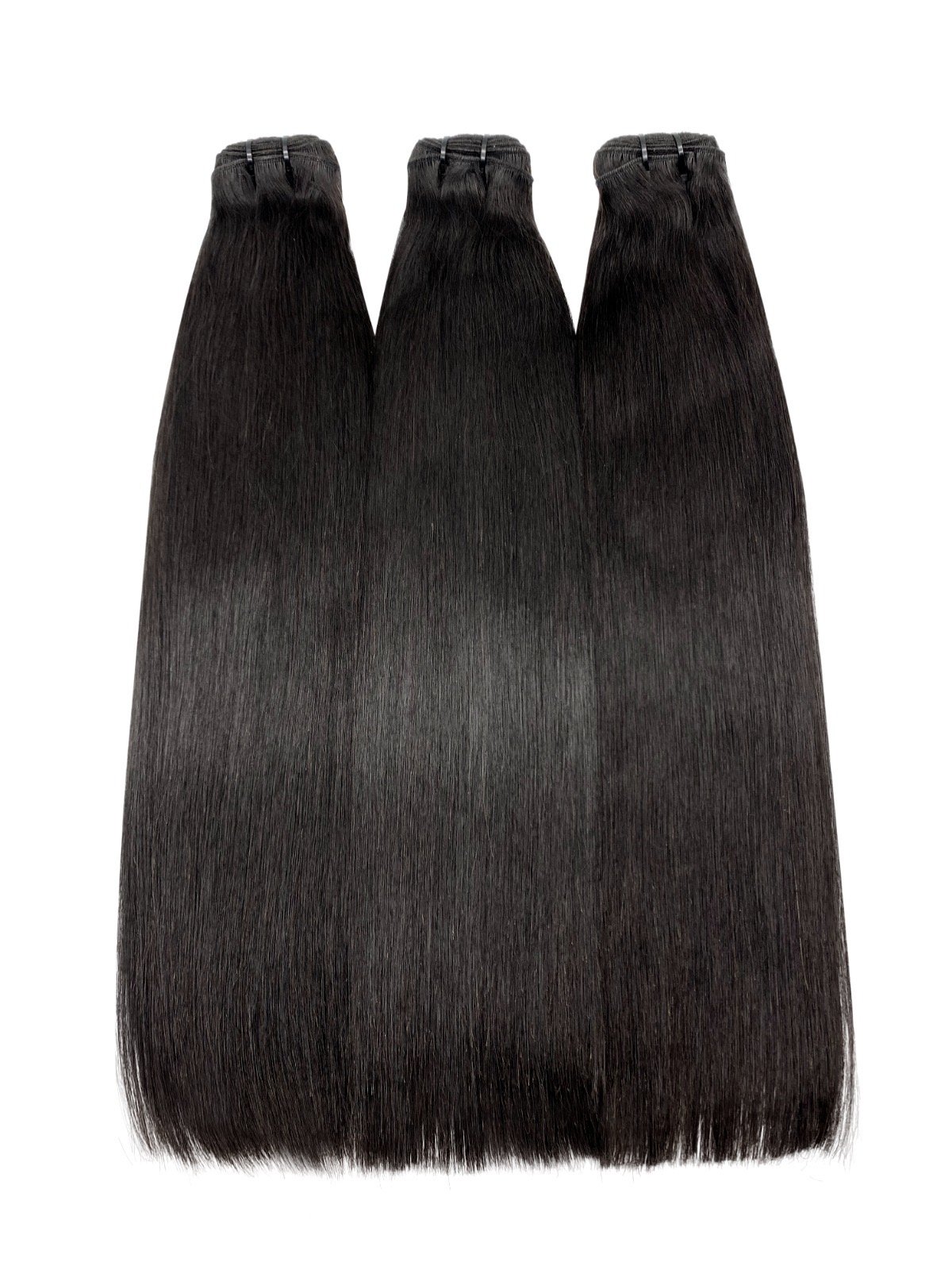 Naturally sleek with a soft, smooth finish. Not bone-straight — it may have slight texture since it’s untouched by steam processing. Can be worn silky or curled easily with heat. -